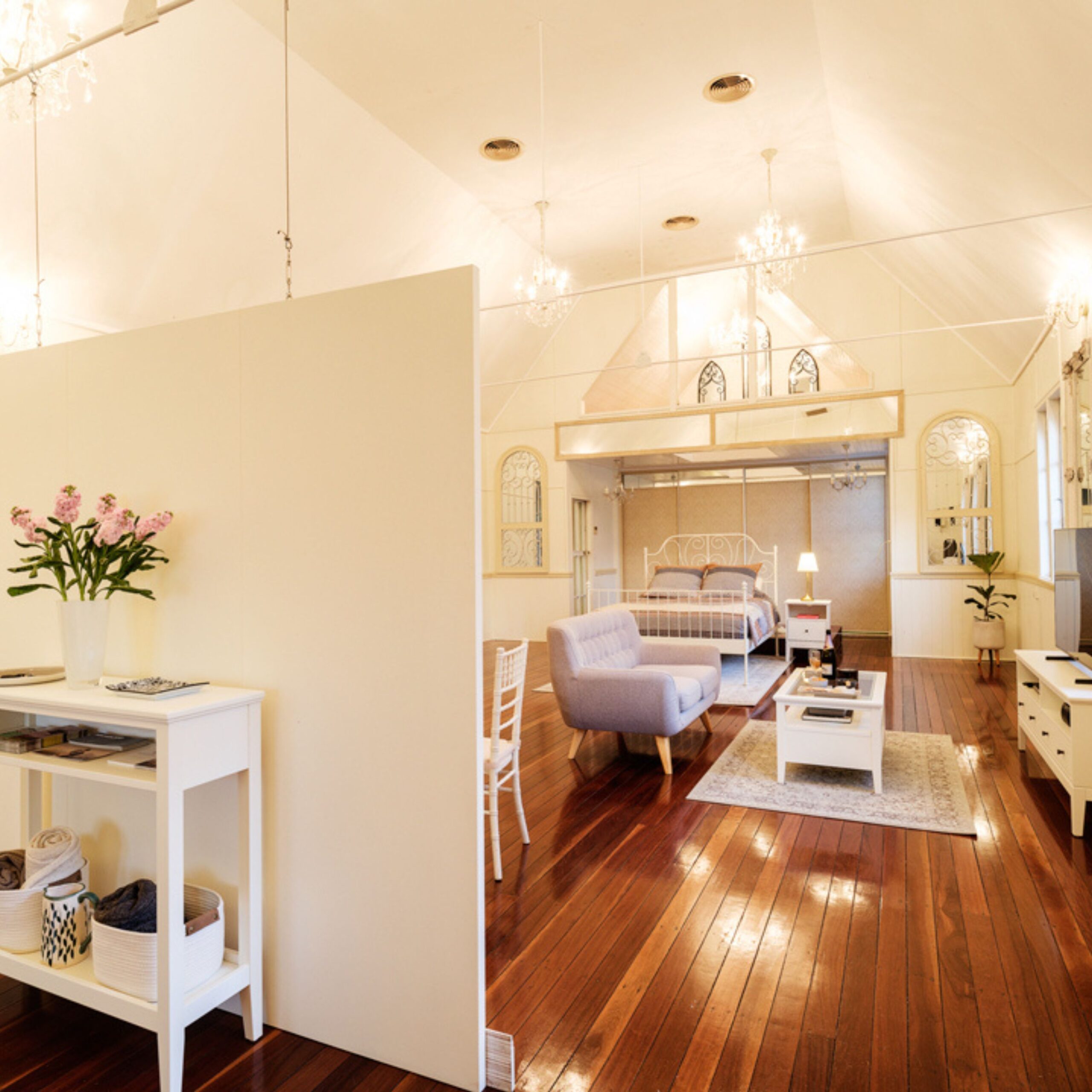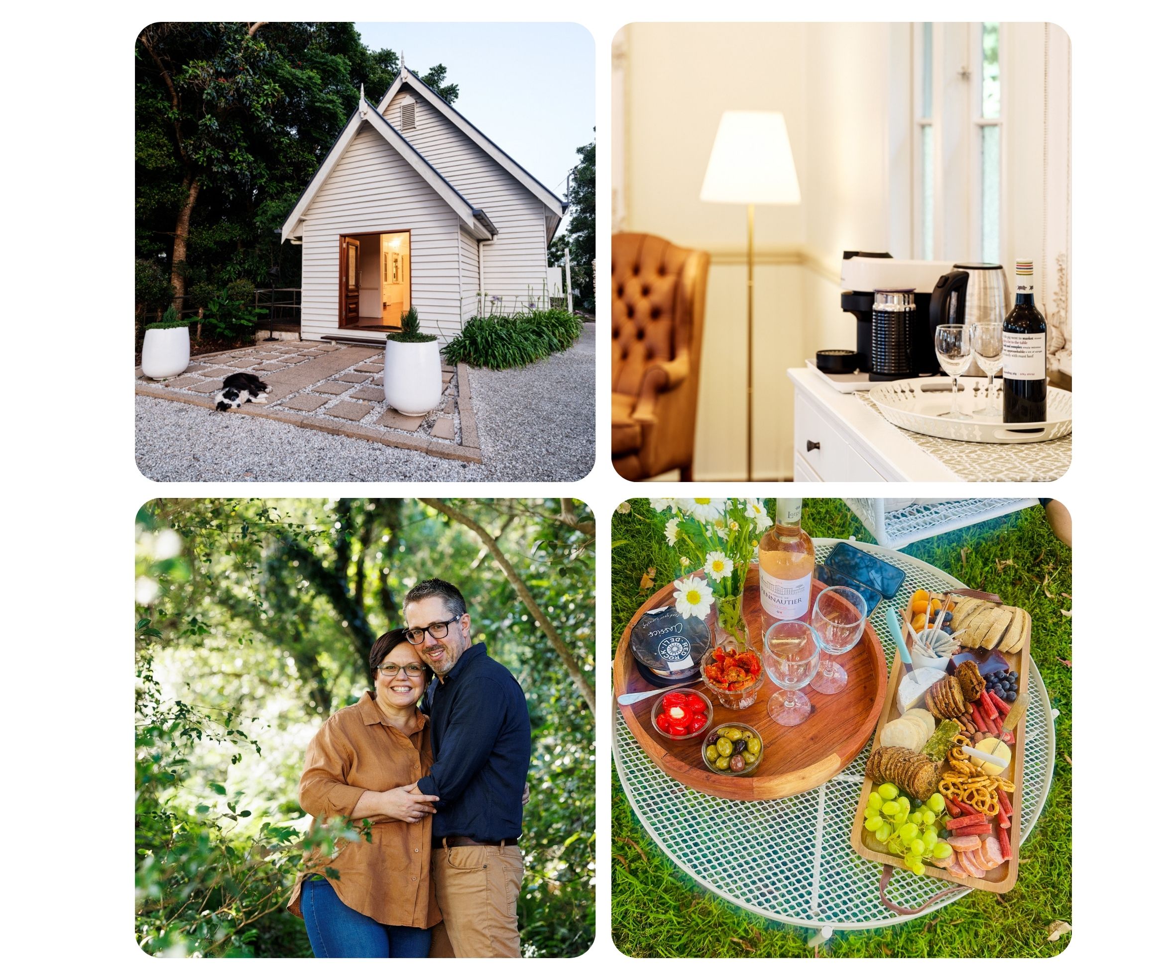Our Little White Wedding Chapel is perfect for weddings but when we have a week or two without ceremonies it transforms into a luxury boutique B&B providing a private, serene escape in the Maleny hinterland.
